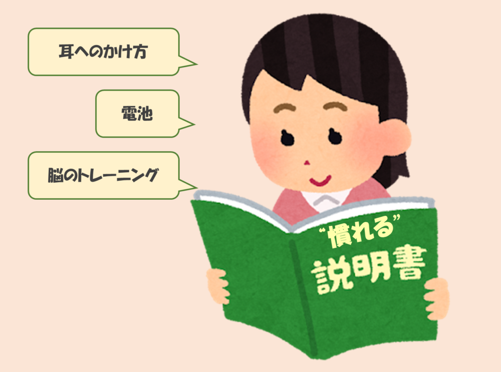 補聴器を使いこなすには、補聴器の着脱や、電池の入れ替え等様々な手順と機能を覚える必要があります。
